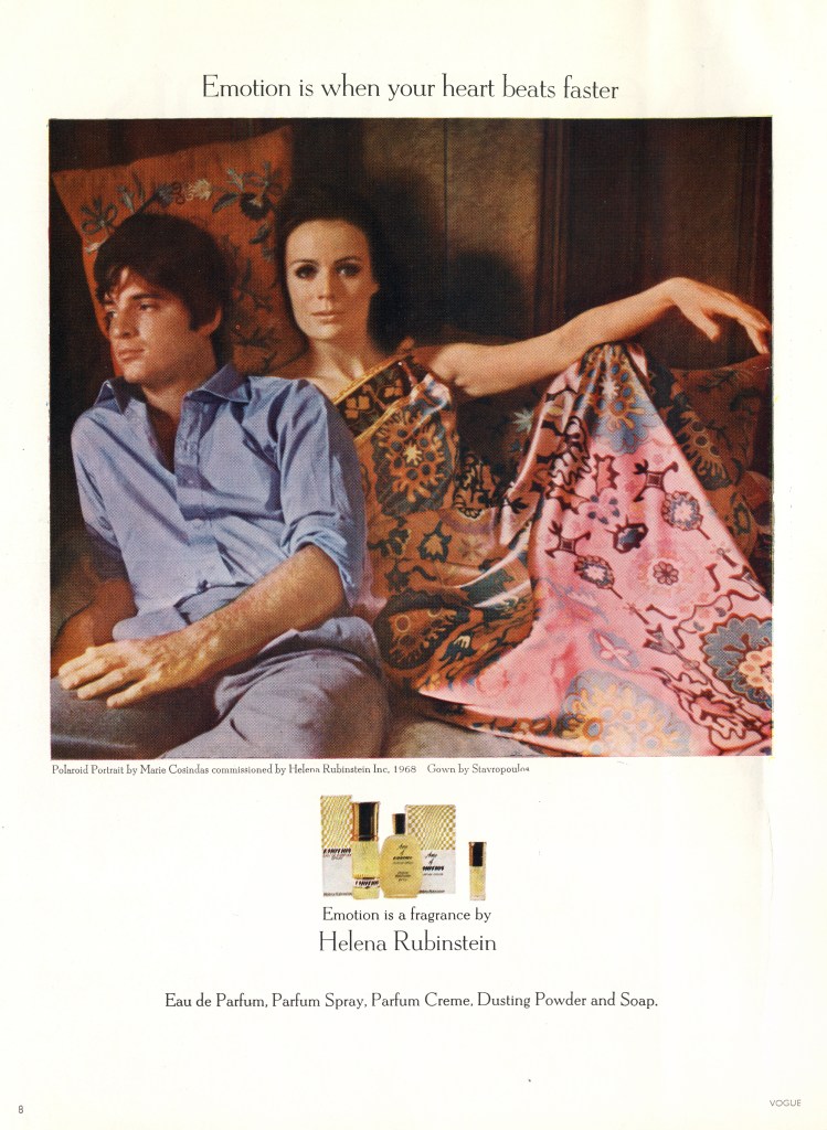 Emotion by Helena Rubenstein Hair and make-up, Helena Rubenstein, Make-up, Marie Cosindas, Stavropoulos, Vintage Adverts, Vogue Polaroid Portrait by Marie Cosindas commissioned by Helena Rubinstein Inc. 1968. Gown by Stavropoulos. Scanned from Vogue, July 1969. Share and share alike: Click to share on X (Opens in new window) X Click to share on Facebook (Opens in new window) Facebook Click to email a link to a friend (Opens in new window) Email Click to share on LinkedIn (Opens in new window) LinkedIn Click to share on Tumblr (Opens in new window) Tumblr Click to share on Pinterest (Opens in new window) Pinterest Click to share on Reddit (Opens in new window) Reddit Like Loading...