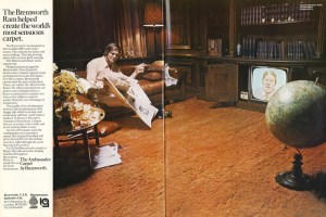 haute naffness, interior design, Mensday, seventies fashion, Vintage AdvertsMmmm. Sensuous carpet. I suspect it was this immensely sensuous carpet which lured the silver platform-wearing lady in the last Bremworth advert I scanned in…