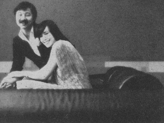 Mickey Mouse is an obsession of Michael Chow, figuring five times, in cast iron, in Chinese rug work, in china, in tin, and even in abstract—Oldenberg’s sculpture in front of the desk. Michael, who runs five restaurants and one club in London, and is opening a restaurant in Los Angeles, is a compulsive collector. His office in a studio flat in Knightsbridge contains a splendid Art Deco desk on a platform, an Art Nouveau rug, two Richard Smiths, and a Robyn Denny, all bathed in Mozart and Bach, with windows opening on to a flower-filled verandah. “It’s a thinking office more than a working office. I sit at the desk and toss a coin for where I’ll go to lunch.” Michael and Tina Lutz were married recently. Tina is wearing an orchid pink mushroom pleat Fortuny bought at a Christie’s sale.
