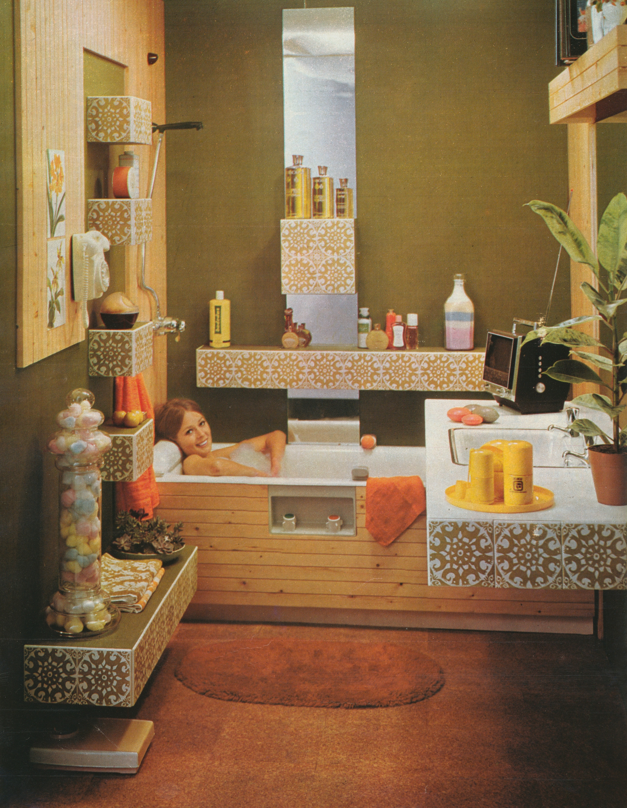 This special 19 bathroom was planned on a budget of £200, which includes all the fixtures and the plumbing. Designed by Igal Yawetz, Dip. Arch. Ham. I.E.A.I. and built by Allied Ironfounders Ltd.