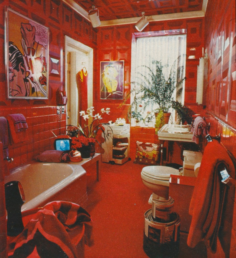 The third is a fiery red hideaway, a fantastic design by Richard Ohrbach for New Yorker Cynthia Peltz. There’s more than a touch of the womb about this room—very comfortable after a hard day at the office …