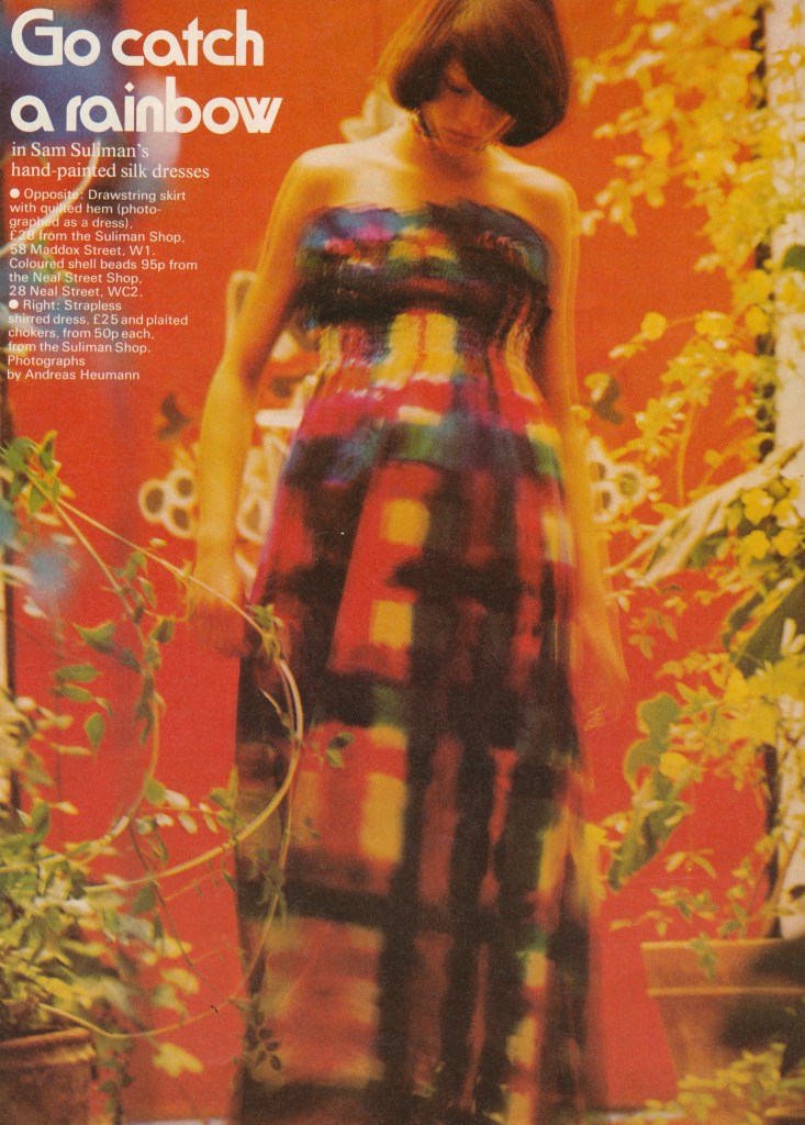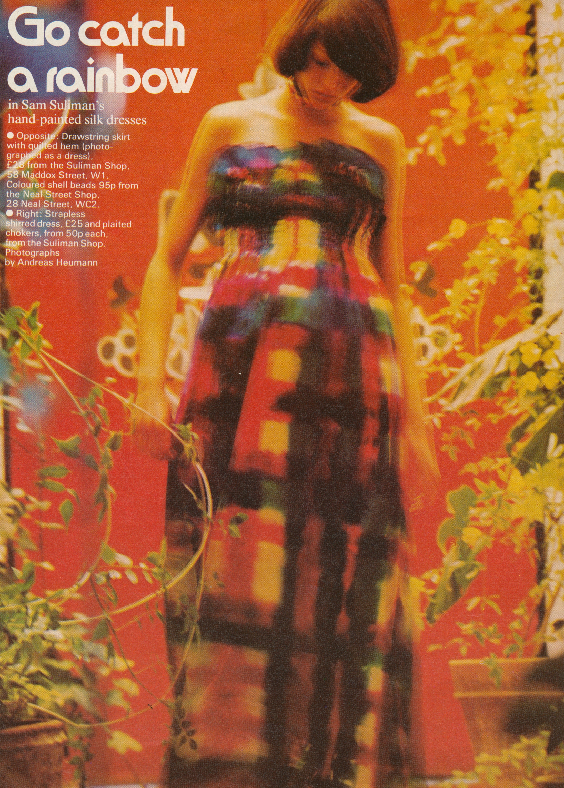 Go catch a rainbow in Sam Suliman’s hand-painted silk dresses.