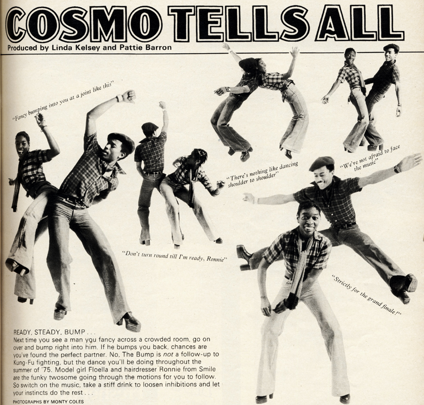 Any child of the Seventies or Eighties, growing up in the UK, will know who Floella is. To anyone else, I’m going to be lazy and link to the Floella Benjamin wiki page. Very exciting to see her doin’ the bump in Cosmopolitan magazine in March 1975. I dare you all to try out the bump tonight, down your local discotheque or just in the comfort of your own kitchen with your loved one(s).