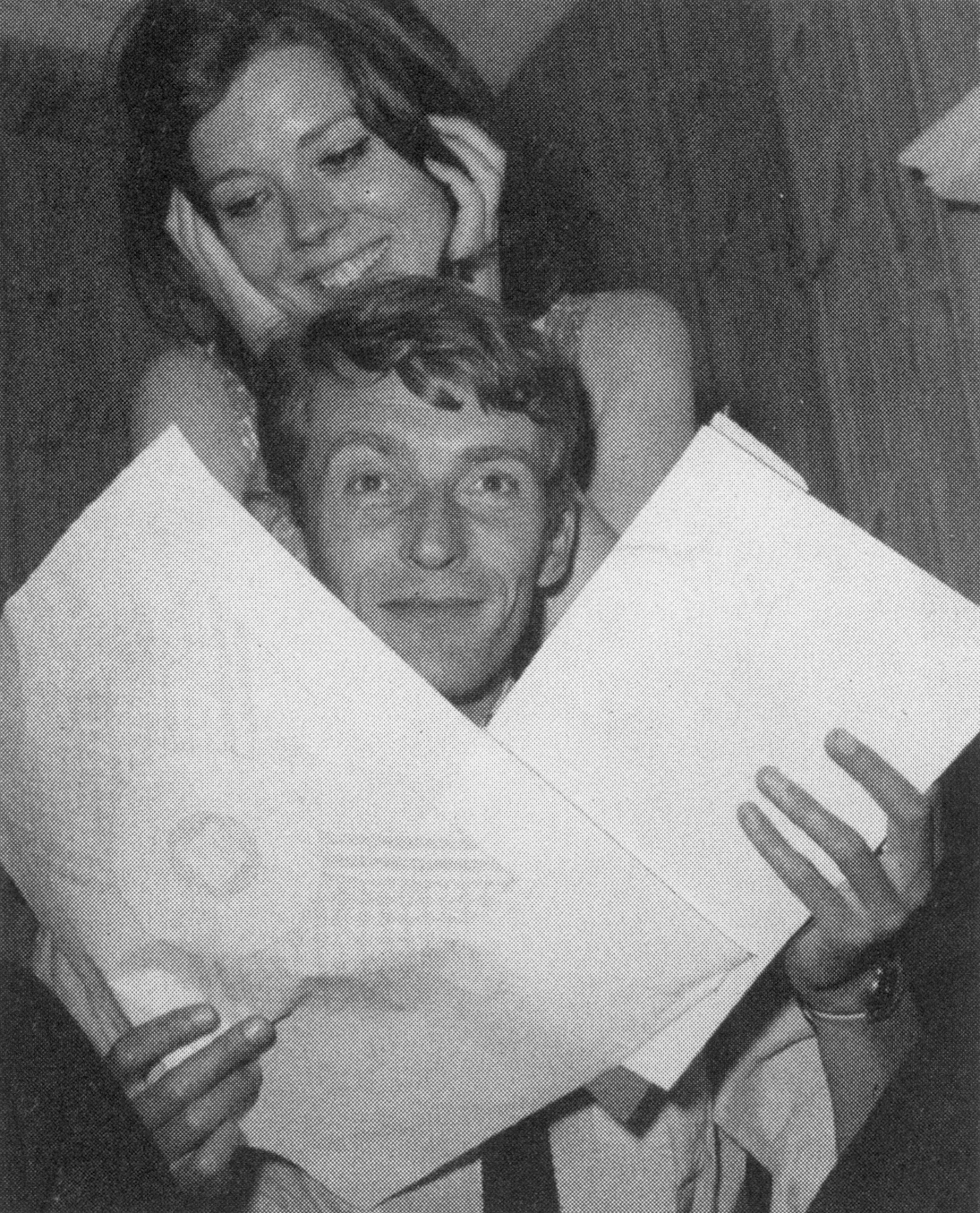 He prefers his clothes close-fitting — ‘loose fit does nothing for one’s shape’. The fabrics he’s keenest on are corduroys, denim, velvet and lightweight wool — all the year round. Colour plays the most important part in his ward-robe. ‘I don’t usually wear checks or that sort of thing; I like solid colours in simple contrast —combinations like red, white and black — or different shades of the same colour. I like white very much for summer, I dislike yellow and am not really wild about green.’ Lord Dufferin sees himself as an impulse buyer with a touch of extravagance, but his formula sounds like a good one for guarding against mistakes.