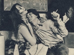 Apart from looking very individual and super, she looked as if she’d just stepped out of a trail-blazing Western film. “I refuse to spend a lot of money on clothes, I’d rather spend it on paintings. I haven’t got much money; you know I don’t earn any money in this country at all, and anyway clothes aren’t made well enough. The most I’ve ever spent on one garment is an Ossie Clark Snakeskin coat.”