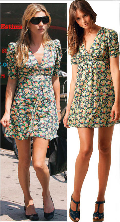 For she has now ‘allowed’ (inverted commas to note that it is not her place to allow such a thing) Topshop to copy the aforementioned dress for her ‘collection’. A travesty so awful, on so many levels it’s taken me about a week to calm down enough to write this. They’ve copied the dress exactly, even down to getting the print copied and the detailing around the neck and on the sleeves. To add insult to injury, the dress in her closet had been hacked with what looks like nail scissors and is now a bum-skimming mini dress. I don’t know whether to laugh or cry when I see how badly out of proportion even the remake is. They’ve remade a ruined dress.