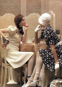 Hair was fairly low maintenance if you so wished. And there was a style for all hair types. Every other decade (and trend within that decade) seems to have beaten everyone’s hair into submission to one overarching style. Likewise with make-up, there was a general look but fewer rules than before. The preferred female silhouette was natural. Curved but never to excess. Softness prevailed. No corsetted waists, but no severe straightness either.
