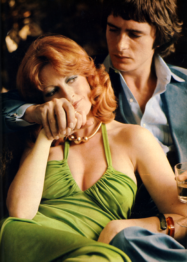 Put on your most sexy dress—something nice and bare that shows a lot. David Collings, bearded for his part in Ken Russell’s Mahler, approves of girls who get “all dolled up”. He likes throwing instant parties: “Italian food, loads of wine, lots of talk. I then just let things happen. Surprises are always fun.” Jane provides just the right degree of suspense in a slashed to the waist dress by Bernshaw, £19.