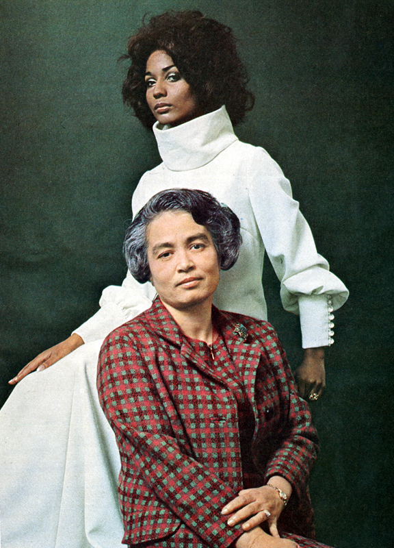 Hylette Adolphe with Mrs Terese Adolphe. Born in Mauritius, convent-educated. Finds modelling “very hard and a bit depressing, but on the whole quite nice.” Recently in Corfu, where she had to learn to ride a Roman chariot for a German swimwear ad. Found it “quite terrifying”.