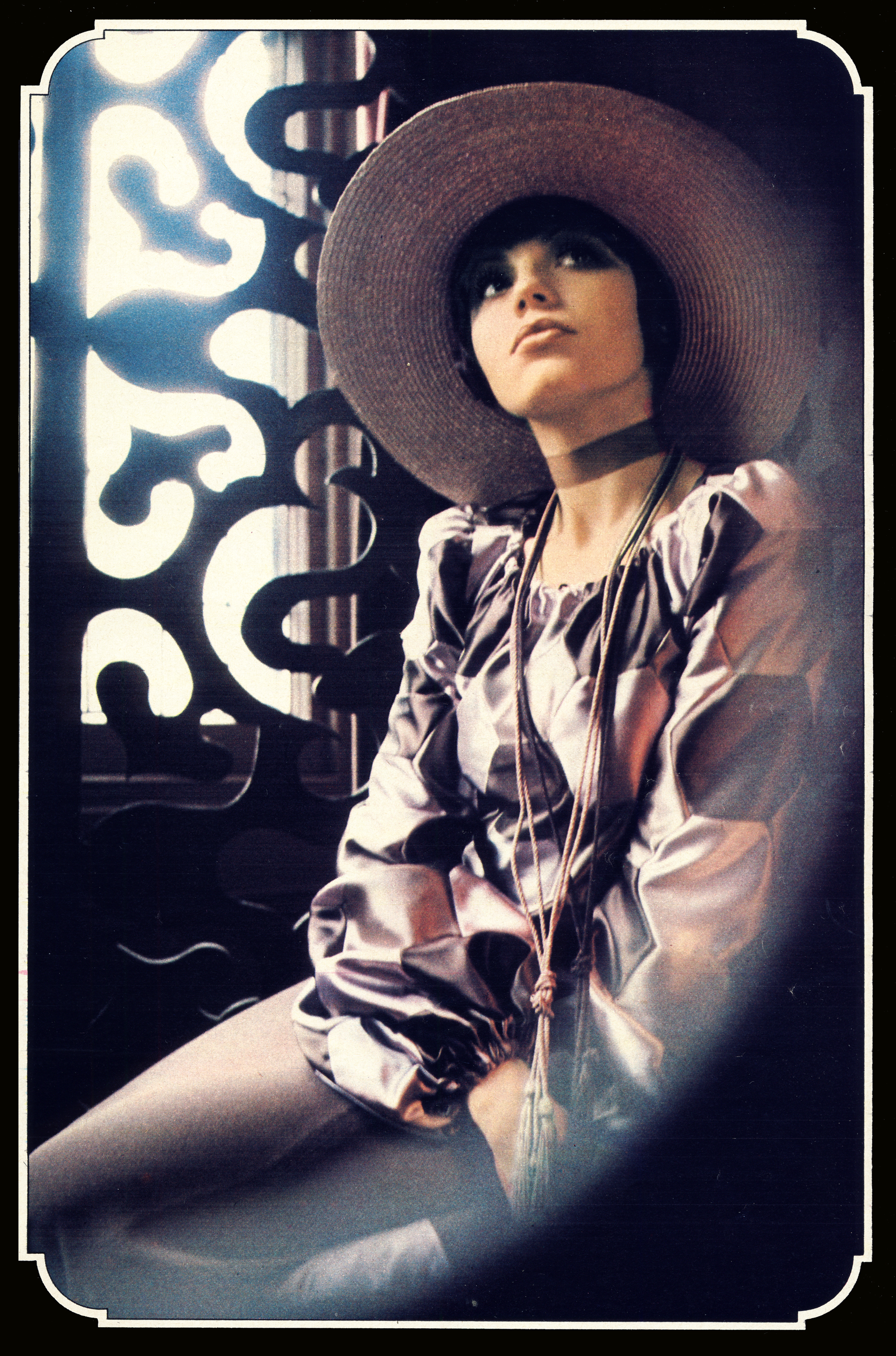 Spring is a story of air spun with flowers – voile light as veils – with veil upon voile. Lyrical layers of patterns together. Bewitching play of light and limb – a gentle illusion to see through – or not – the legs veiled in trousers quite sheer, skirts long and then suddenly short at one side, a flurry of leg through the frills and the flowers. Mary Quant played Pied Piper to the young in the sixties, now she designs to the heart of the new mood with her prettiest collection in years.