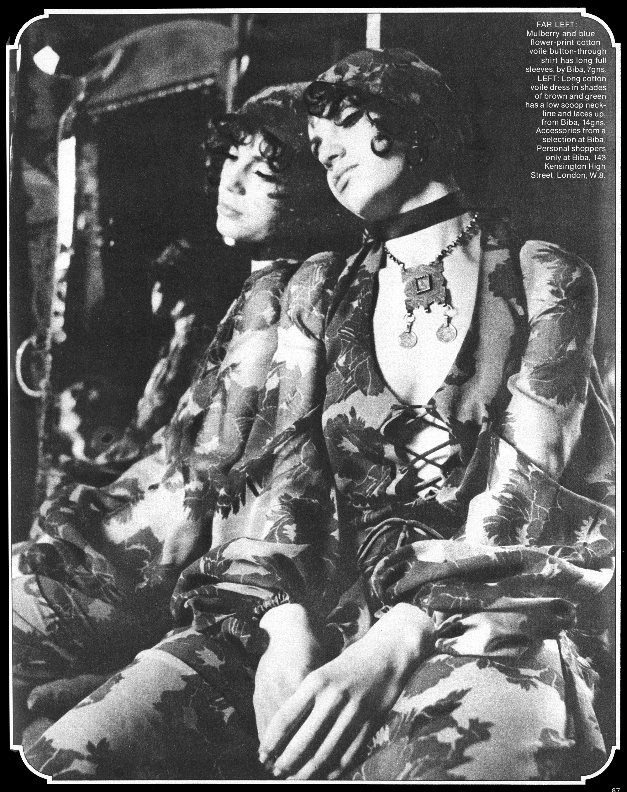 Many thanks to Barbara Hulanicki for letting me know that she took these stunning photos (modelled by Eva from Biba). They were uncredited in the magazine.