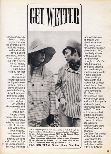Get Wetter in Brighton 1960s, brighton, british boutique movement, Inspirational Images, mary quant, petticoat magazine, Vintage Editorials Oh how I would love to have some of these outfits (and some ‘Kinky Kaps’) for running around on Brighton beach…especially given the appalling weather lately! Scanned by Miss Peelpants from Petticoat, January, 1967. Share and share alike: Click to share on X (Opens in new window) X Click to share on Facebook (Opens in new window) Facebook Click to email a link to a friend (Opens in new window) Email Click to share on LinkedIn (Opens in new window) LinkedIn Click to share on Tumblr (Opens in new window) Tumblr Click to share on Pinterest (Opens in new window) Pinterest Click to share on Reddit (Opens in new window) Reddit Like Loading...