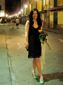 I note, with some resignation, that the good people of Florence do not tend to dress for dinner. Tourists are pretty useless for this too, obviously. So I took it upon myself to fly the flag for vintage for my birthday dinner at Zàzà (thanks to the gorgeous Laurakitty for the recommendation). A Polly Peck moss crepe empire line early-mini which nobody wanted when I listed it on eBay last year, I subsequently tried it on and realised it was a perfect fit, and my beloved green silk DeLiso Debs. Good rule of thumb: If you’re feeling a bit gloomy about ageing another year, wear something which is 70-odd years old. My dress was also about 45 years old, so I was doing a good job of being the youngest thing about…..er…..me.