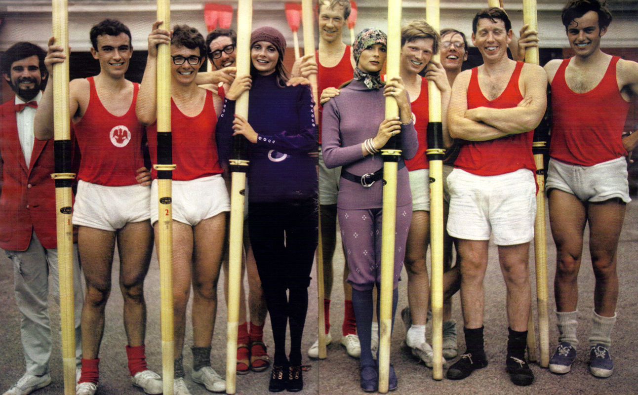 Cornflower blue cotton jersey halter-neck top with daisy motif, Tabu £4.90. Cream gaberdine shorts, Tuttabankem £12.50. Silky fine knit cardigan with embroidered pockets from a selection at Bombacha. Blue felt beret, Kangol £1.50. Thin scarlet belt, Peter Robinson 55p. Royal blue canvas wedge-heeled peep-toe espadrilles, Chelsea Cobbler £9.99. Men’s clothes: Striped blazers from £23.50, and Panama hats £1.30, both from Simpsons, Piccadilly, W1. Double-breasted white jersey knit suit £40, striped cotton shirts £7.95, and white bags from £5, all from Bugatti, Kensington Church Street, W8. Black and white correspondent shoes, £12.75 from Anello & Davide, 33 Oxford Street, W1. Brown and cream correspondent shoes, £24.99 from Russell & Bromley. Hair by Trevor at Ricci Burns.