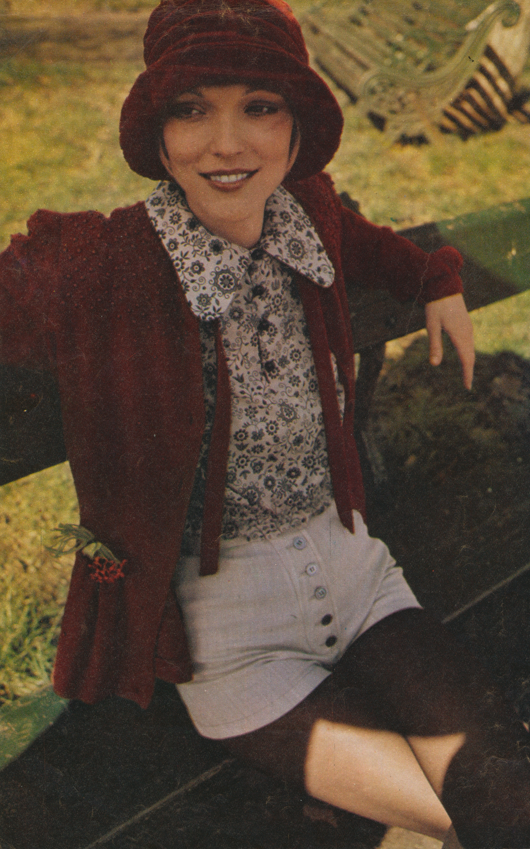 Terylene and linen shorts with buttons, £1.99. Daisy print cotton blouse, £2.99. Rosie Nice jacket, £3. Quant tights, 75p.