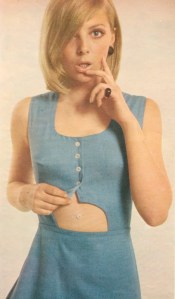 One of my favourite spreads from Honey magazine, June 1965 and perfect inspiration for the weather we’re having here in Blighty. I’ve selected some of my personal highlights (because it doesn’t half go on…) which include two John Bates dresses, an amazing Dollyrockers (above, I love the detail with the missing button!! Makes me wonder if it fell off while the shoot was happening…) and I can’t help but adore the final image which is a superb example of the beloved ‘Butt Bow’ phenomenon. And what I would consider to be an ideal wedding outfit (please see previous blog about meringues…). Ahhhh, such bliss to live in the past. One day I hope I’ll be able to move there permanently…