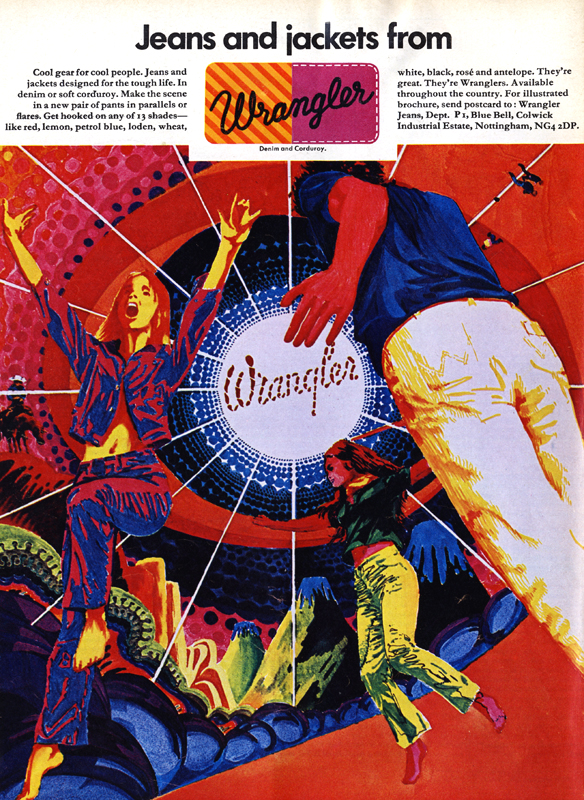 …a time travelling post box yet? At one time, the otherwise-evil-Topshop were doing some brilliant loons which I’m probably on the verge of wearing out because of the poor quality of modern denim. I knew I should have bought four of each style. Now there’s hardly anything approaching a decent flare and we seem to be back to bloody low-rise ubiquity again. Sigh. I want to order from these 1972 adverts. I want the flares AND the tops. Why was I born too late? Why?