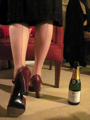 My hair wasn’t really behaving, as per, and I’m in a bit of a shy mood photographically right now. But here are my YSL shoes (having long-overdue outing), seamed stockings and the hem of my Bus Stop dress.