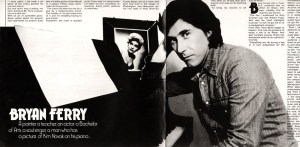Along with David Bowie, Roxy Music certainly helped bring glamour back to rock music. But as the Top-Ten glitter pop groups cheapened the idea, it’s been noticeable that Bryan Ferry has taken to wearing black suits and white shirts, or vice versa. Whatever his apparel, there’s still the melodramatic stare and the gaunt, distant blue eyes which distinguish him.