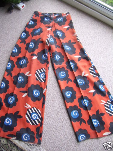 So why don’t I buy them? They’re my exact size, even down to the inside leg (yes, I want to cry!) Well lack of funds for one thing, but on a point of principle I shouldn’t buy another vividly printed pair of crepe high waister flares until I’ve worn my existing pair. Which aren’t Ossie but they are a rare Fulham Road (Sylvia Ayton and Zandra Rhodes for the uninitiated) pair in Zandra’s early, and legendary, lipstick print. I’ve been itching to wear them for ages but they’re white, and they’re tight……so they still await a perfect opportunity, and one where I’m unlikely to spill things down them.