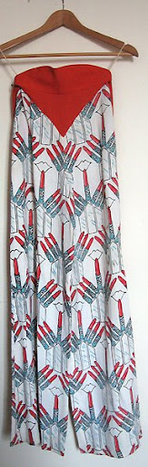 Right: Quick and rubbish photo of the Fulham Road ones…[Odette is having a day off – plus the lighting is shocking today!]…what you can’t see are the red ties which tie around the back. They came from the same lady as the chiffon top and trouser Ossie set you can see on my website, but those trousers don’t fit me at all. Darnit!!!