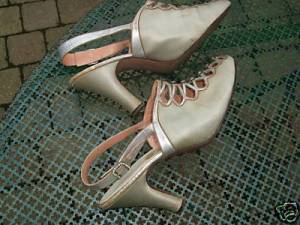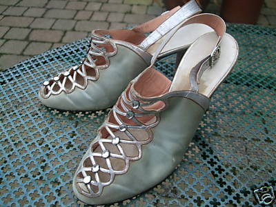 emma peel, shoes, Things I wish I ownedI find I have become quite, quite transfixed by these shoes just listed on eBay. They sort of look like they should be hideous. In the wrong hands they would have been hideous. But they’re not hideous. They’re beautiful. They’re green, they’re silk, they’re diamante.