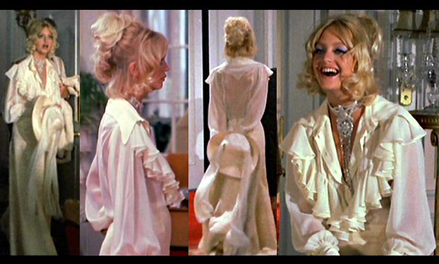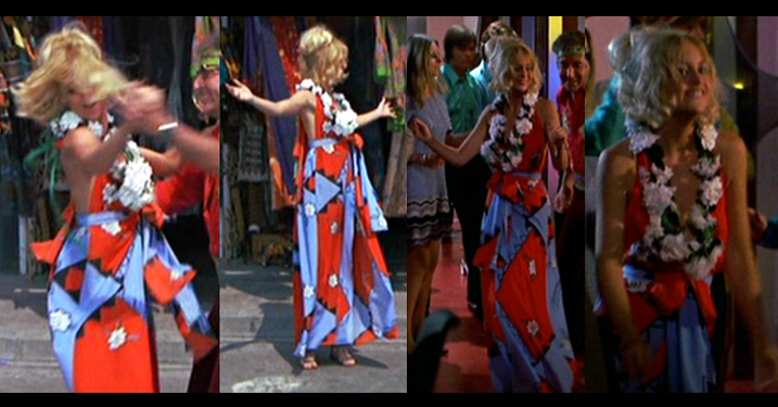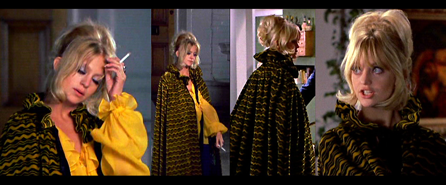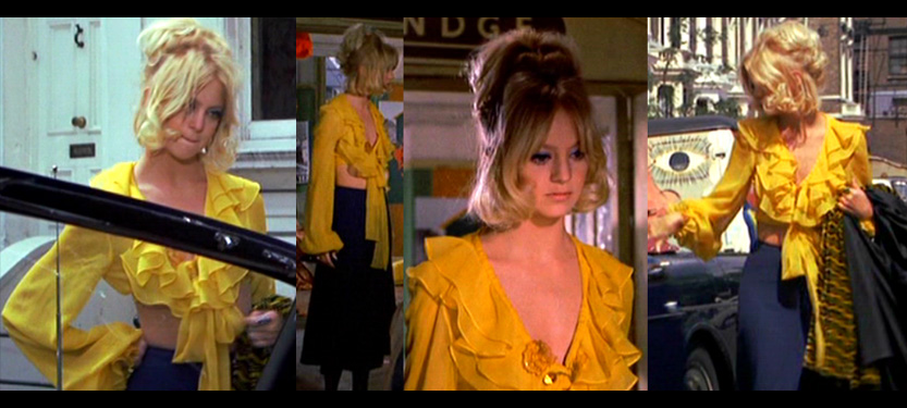 The colour episodes had been intended to be designed in a similar ‘working wardrobe’ manner by Pierre Cardin, who was already creating Steed’s very elegant suits [Shocking! A Frenchman designing our beloved Avengers? Whatever next??], but he was unable to complete the task and Hughes was brought on board as designer instead. Unfortunately I know very little about the man himself, but it would seem he actually was a costume designer rather than a fashion designer like Bates or Cardin. With the new colour format, and the strong overseas interest in the show, Hughes had new challenges to those of Bates with the black and white. He attacked it with gusto, using vivid colours, prints and playing with new synthetic fabrics. There’s also the varied influences, reflecting the ever-changing fashion scene of the time. We still have space-age cut-outs and skin tight gear, but also feathers and psychedelic silks. The look is more way-out, and more feminine than ever. He also invented the Emmapeeler, which was a more ‘Pop’ take on the leather and pvc catsuits of the earlier series.